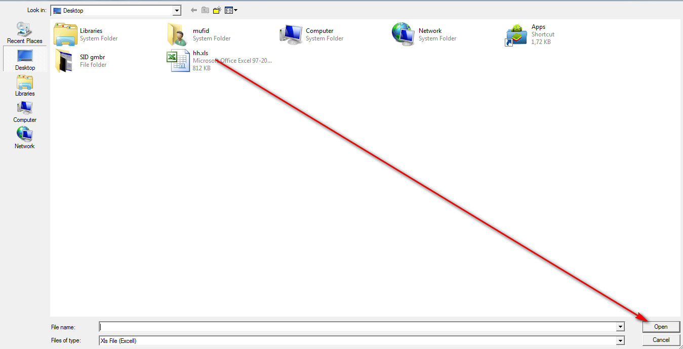 Cari file excel data barang yang telah dipersiapkan sebelumnya dan didouble klik atau klik file excel dan klik open