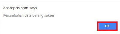 maka akan muncul konfirmasi bahwa penambahan data barang sukses, kemudian klik OK