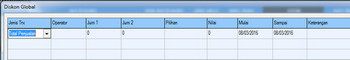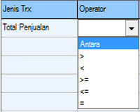 Menu ini menunjukkan simbol perintah pada saat jumlah bilangan harga pembelian tertentu sehingga pada harga tertentu perintah dapat dijalankan, dalam menu ini terdapat 6 pilihan, yaitu: Antara, >, <, >=, <=, dan =. Pada menu Operator ini akan langsung terkait dengan pengisian jumlah bilangan yang akan Anda jadikan sebagai jumlah nominal pembelian Pelanggan Anda untuk memberikan diskon yang ada di dalam menu "Jum 1" dan " Jum 2".