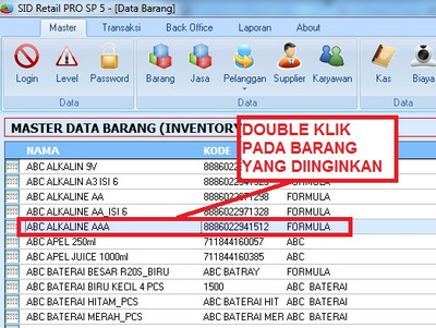 Kemudian klik Kanan pada barang yang akan diedit harganya > pilih Edit (contoh barang: ABC ALKALINE AAA)