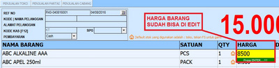 Ada dua cara untuk mengedit harga pada saat penjualan: