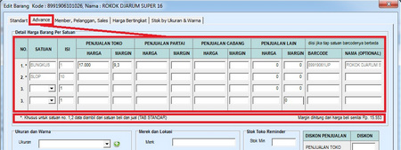 Jika Anda telah meyetting multi satuan jual terhadap barang tertentu maka pada barang tersebut tidak bisa lagi untuk memakai Menu Harga Bertingkat dalam penggunaan software.